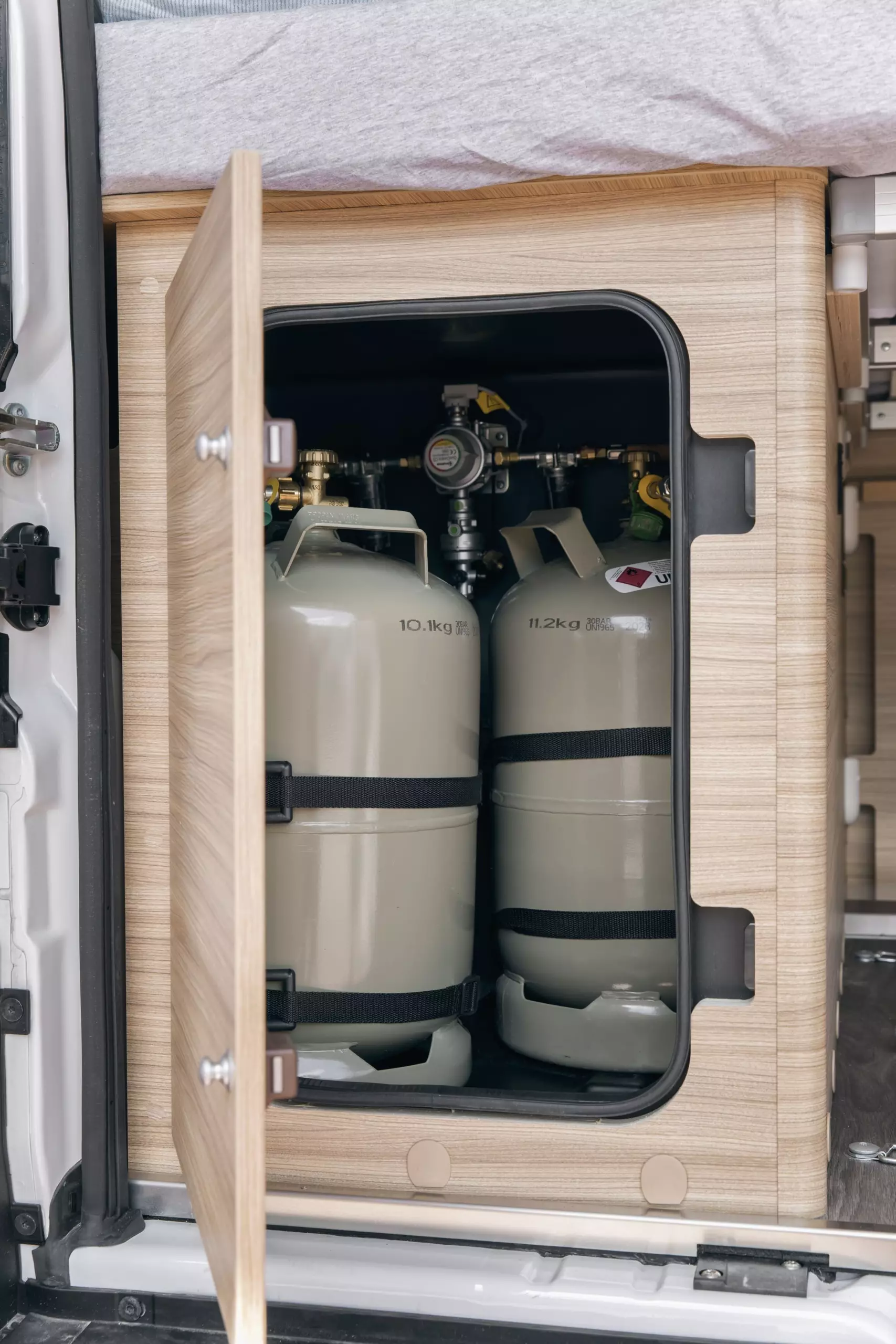 我們的露營車標準配備包括廚房設施、冰箱、淋浴、廁所、暖氣和基本的隨車工具。請參閱我們的「車上設備」和「隨車配備」區塊。
